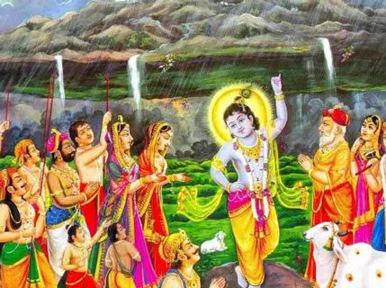 ଯାହା କି ଗୋବର୍ଦ୍ଧନ ପର୍ବତ ଆମର ଗୌ-ଧନର ସମ୍ବର୍ଦ୍ଧନ ଓ ସଂରକ୍ଷଣ କରିଥାଏ । ଯାହାକି ପର୍ଜ୍ୟବରଣ ଶୁଦ୍ଧ ହୁଏ । ସେଥିପାଇଁ ଇନ୍ଦ୍ରଙ୍କୁ ପୂଜା ନ କରି ଗୋବର୍ଦ୍ଧନଙ୍କୁ ପୂଜା କରିବା ଉଚିତ୍ । ଗୋକୁଳର ଲୋକମାନେ ଶ୍ରୀକୃଷ୍ଣଙ୍କ କଥା ଶୁଣି ଗୋବର୍ଦ୍ଧନଙ୍କୁ ପୂଜା କରିଲେ । ଇନ୍ଦ୍ରଦେବ ଏହା ଦେଖି ବହୁତ କ୍ରୋଧିତ ହୋଇ ମେଘକୁ ଆଦେଶ ଦେଲେ ଯେ ଗୋକୁଳକୁ ବିନାଶ କରିଦିଅ । ମେଘ ଏହି ଆଦେଶରେ ବହୁତ ବର୍ଷା କରାଇଲେ ଏହା ଦେଖି ଲୋକମାନେ ଭୟଭୀତ ହେଲେ ।