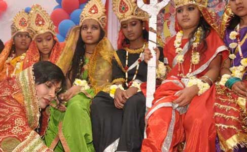 ଧର୍ମ ଗ୍ରନ୍ଥରେ ୩ବର୍ଷ ବୟସ ଠାରୁ ୯ବର୍ଷ ବୟସ ମଧ୍ୟରେ କନ୍ୟା ମାନଙ୍କ ଠାରେ ମାତାଙ୍କ ସ୍ୱରୂପ ଥାଏ ବୋଲି କୁହାଯାଇଛି । ୧ଟି କନ୍ୟାକୁ ପୂଜା କରିଲେ ଐଶ୍ଵର୍ଯ୍ୟ ପ୍ରାପ୍ତି ହୁଏ । ୨ଟି କନ୍ୟାକୁ ପୂଜା କରିଲେ ଭୋଗ ଓ ମୋକ୍ଷ ପ୍ରାପ୍ତି ହୁଏ । ୩ଟି କନ୍ୟାକୁ ପୂଜା କରିଲେ ଧର୍ମ, ଅର୍ଥ ଓ କାମ ପ୍ରାପ୍ତି ହୁଏ । ୪ଟି କନ୍ୟାକୁ ପୂଜା କରିଲେ ପଦପଦବୀ ପ୍ରାପ୍ତି ହୁଏ । ୫ଟି କନ୍ୟାକୁ ପୂଜା କରିଲେ ବିଦ୍ୟା ପ୍ରାପ୍ତି ହୁଏ । ୬ଟି କନ୍ୟାକୁ ପୂଜା କରିଲେ ସିଦ୍ଧି ପ୍ରାପ୍ତି ହୁଏ । ୭ଟି କନ୍ୟାକୁ ପୂଜା କରିଲେ ମାନସମ୍ମାନ ଶ୍ରେଷ୍ଠତା ପ୍ରାପ୍ତି ହୁଏ । ୮ଟି କନ୍ୟାକୁ ପୂଜା କରିଲେ ସମ୍ପଦ ପ୍ରାପ୍ତି ହୁଏ । ୯ଟି କନ୍ୟାକୁ ପୂଜା କରିଲେ ସମସ୍ତ ସୁଖ ପ୍ରାପ୍ତି ହୁଏ ।